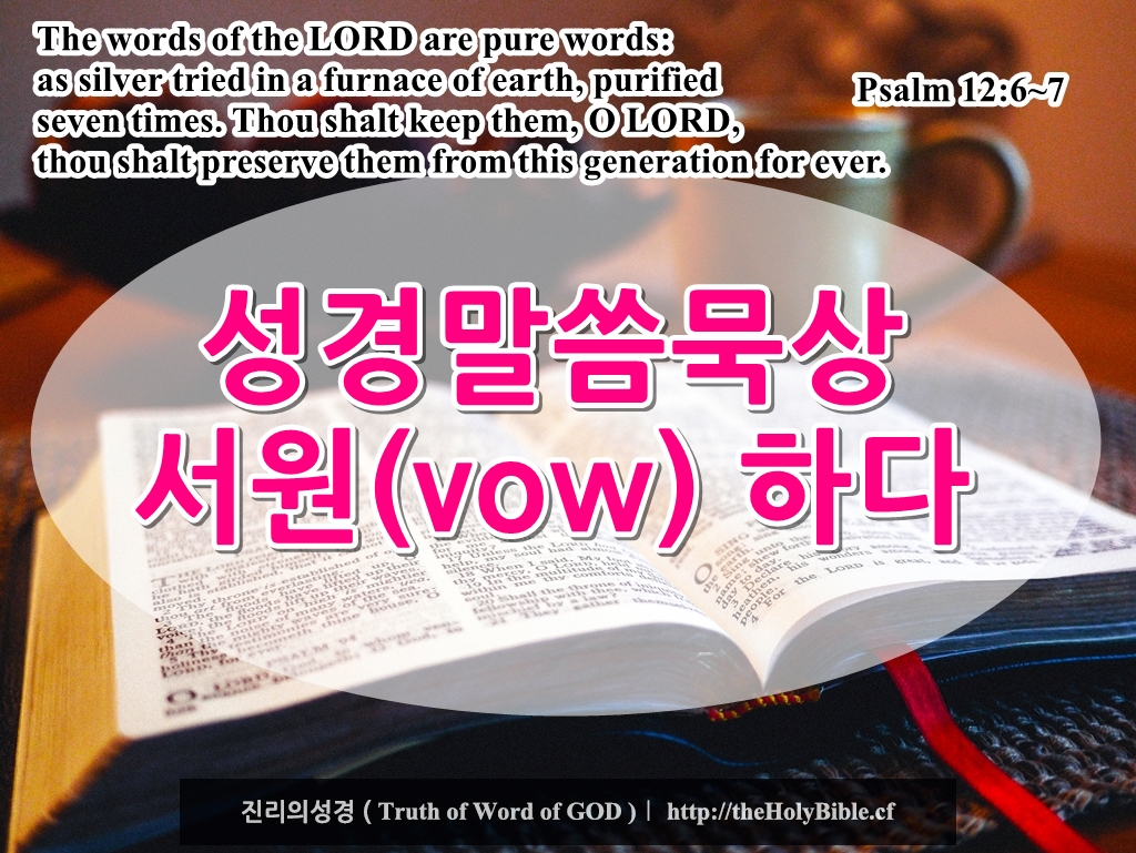 ★ 서원(vow)은 신약시대에 주어진 규례가 아닙니다. 굳이 안하는게 좋지만, 만약 하나님 앞에 약속을 하셨다면 반드시 지키시기 바랍니다.