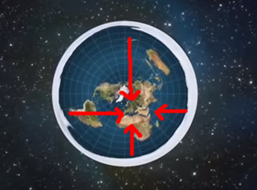 ●땅의 중심 = 만일 구형의 땅인 경우라고 가정한다면, 지표면에는 중심이 올 수 없습니다. 무게 중심은 지구 내부 한가운데가 될 것이기 때문입니다.
