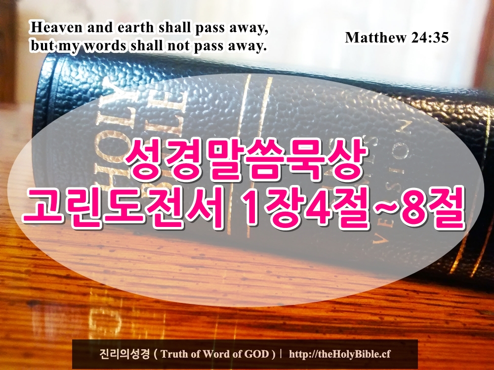 ★ 고린도전서 1장4절~8절은 연결된 구절이므로 한번에 앞뒤 문맥을 이어서 보시기 바랍니다.